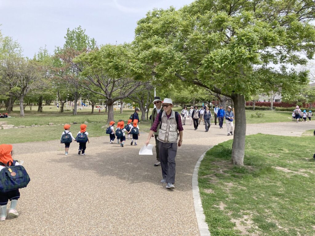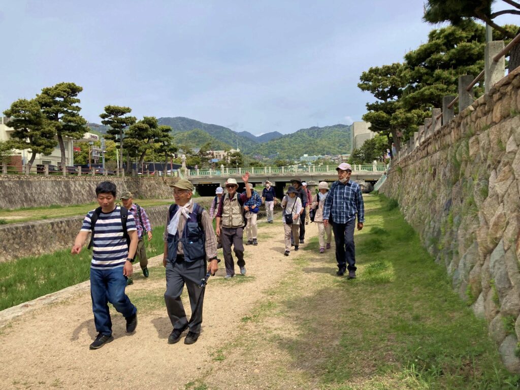 4月22日(火)に4月例会が開催されました。今回は、第328回「阪急芦屋川から芦屋浜散策」と題し、心配していた天候にも恵まれ、会員22名、世話役6名、総勢28名と多くの方に参加いただきました。
