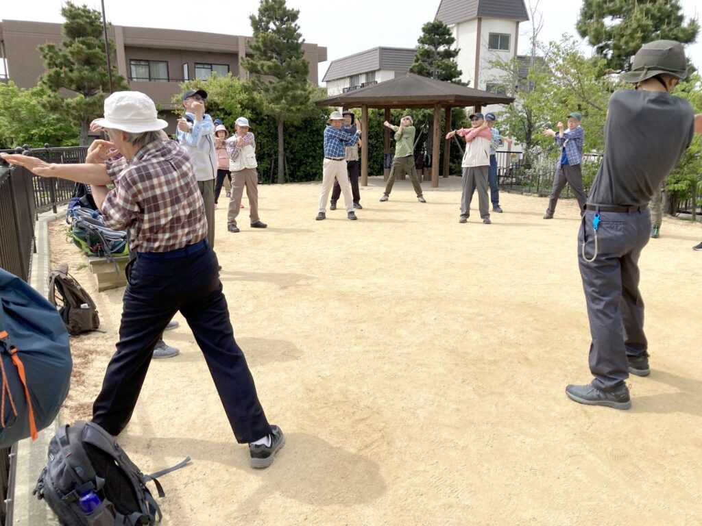 「阪急神戸線 芦屋川駅」改札口に10時00分に集合し、「月若公園」に移動し、代表の挨拶と諸連絡の後ストレッチを行い、10時10分に「芦屋公園」に向かいました。