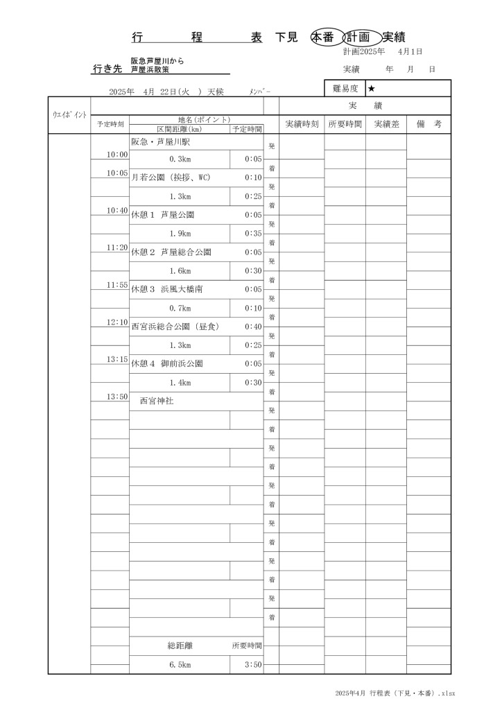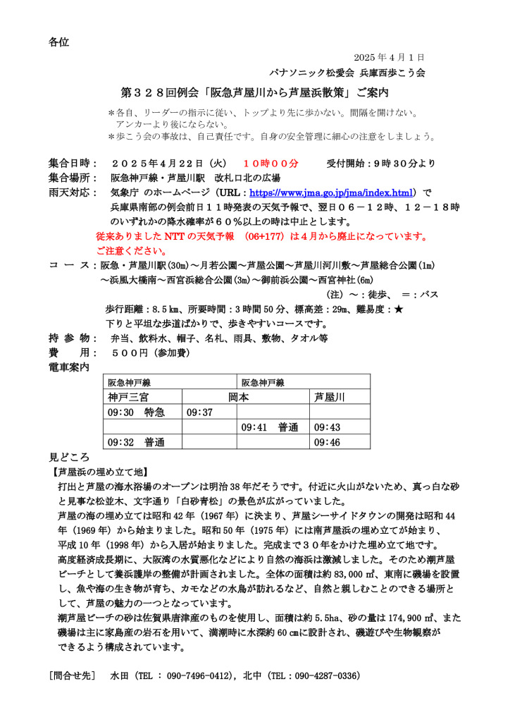 【歩こう会】「阪急芦屋川から芦屋浜散策」(第328回例会2025.4.22)