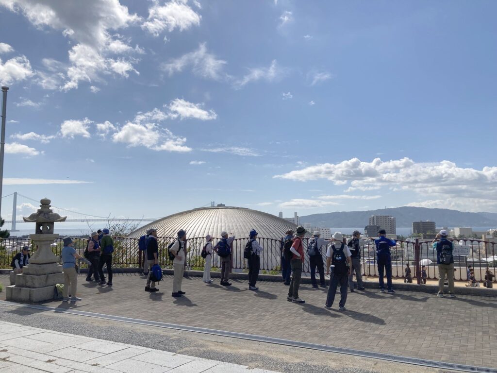 - 眺望スポットからの眺め(プラネタリウムの屋根を真中に明石海峡大橋と淡路島)