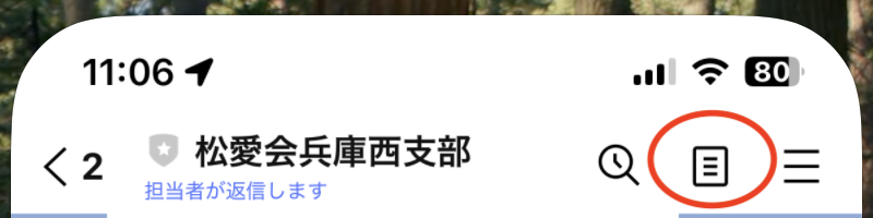 LINEを立ち上げ、トーク画面から松愛会兵庫西支部を選択