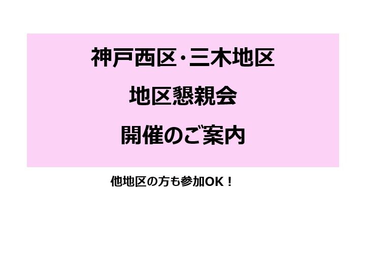 参加希望の方は以下のメールアドレスに「神戸西区・三木地区懇親会への参加希望」と記入の上、「お名前」「お住まいの郵便番号」「日中連絡のとれる連絡先(電話/携帯番号)」を明記して電子メールをお願いします。 メールアドレス: asao.matsumoto@gmail.com(兵庫西支部 神戸西区・三木地区担当)松本まで
