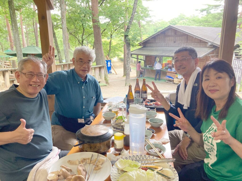11時30分に「椎茸園」到着しました。「椎茸園」で集合写真を撮影後、BBQ大会を開催しました。3支部合同で年に一度の懇親を深め、14時30分にBBQを終わり、バスにて新三田駅に移動し解散としました。