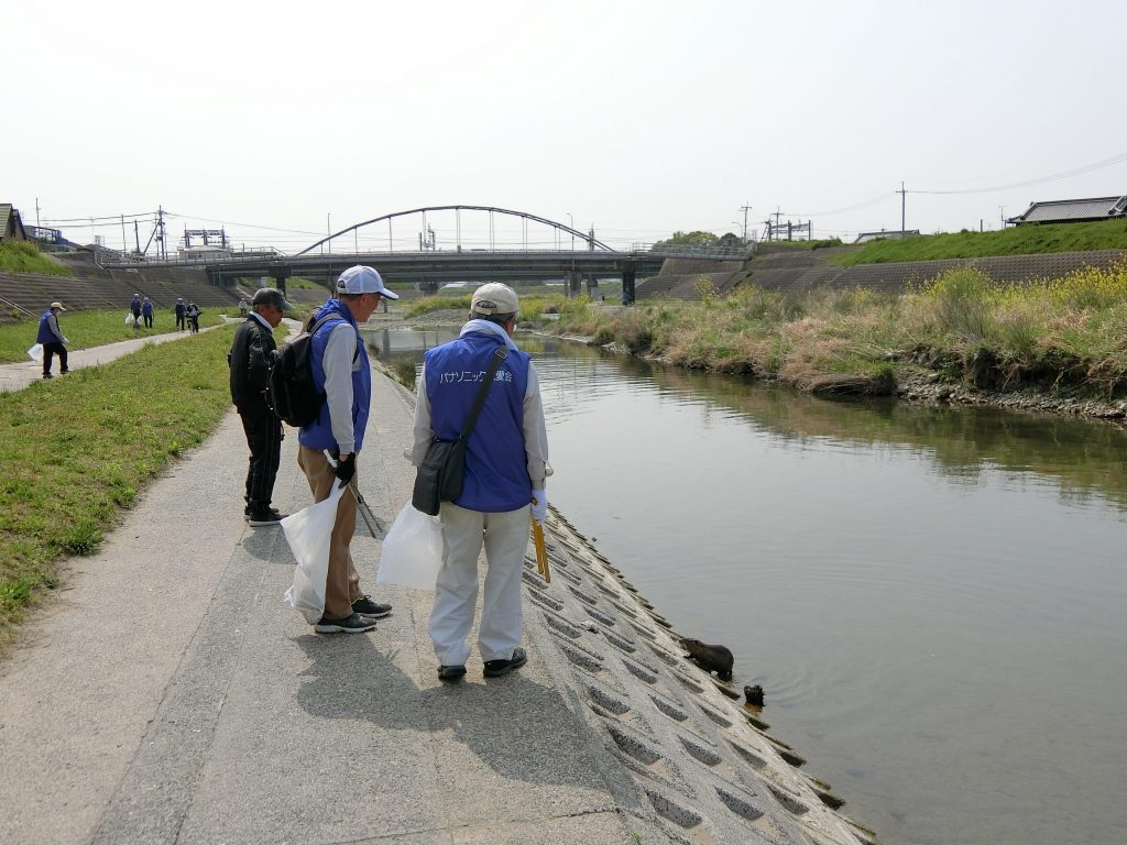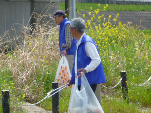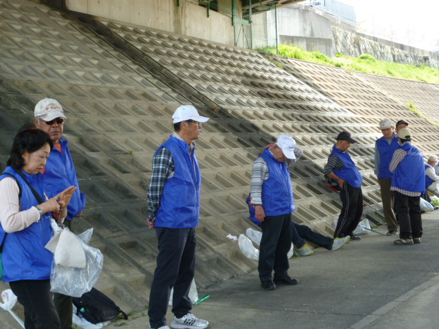 気温22~23度,寒くもなく暑くもなく、一級河川安威川の清流を見、せせらぎを聞きながら最高のコンディションで皆さん楽しく、明るく、元気で、笑顔でわいわい、ハイキング気分で清掃作業を終えました。