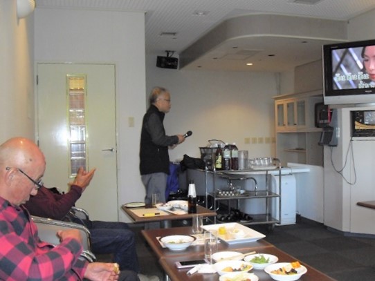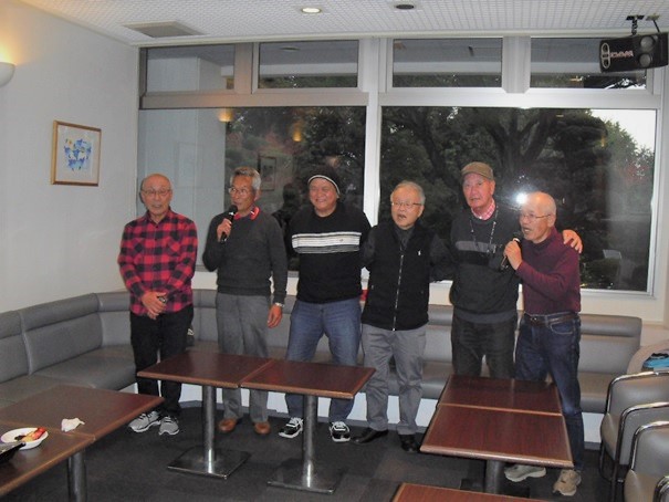 好天に恵まれ紅葉のPリゾートの長い坂を上ると少し汗をかいた。今日の参加者は7名、カラオケルームに着くと新曲が入らず部屋替えのトラブル、会費を支払い、坂東さんの支部連絡後、再会に乾杯しからおけ同好会がスタートいつものように好きな曲を歌い自慢のノドを披露、少しでも多く歌えるよう今回も唄い終わったら演奏中止ボタンをセルフで押すことにした。一人7曲全部で49曲を唄い、最後は全員で合唱しカラオケを楽しんだ