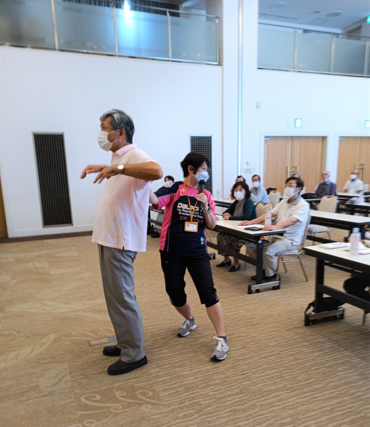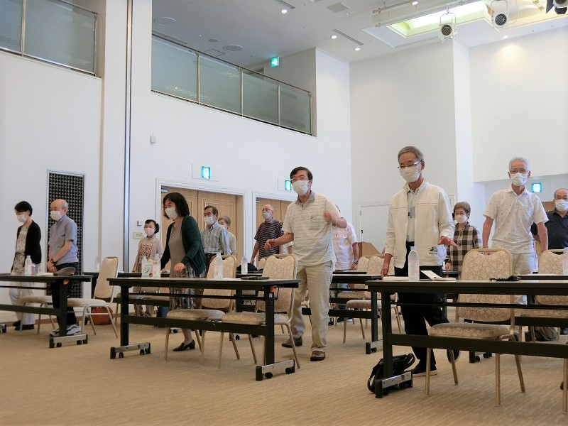 足上げ体操・肩甲骨体操などの健康体操や栄養・食習慣などの認知症予防講話、脳トレ体操、脳トレドリルなどを行い、参加者も一緒に体を動かし、楽しく有意義な時間を過ごしました。ご講話の後は、レストラン「さくら」で昼食会を行いお互いの交流を深めました。