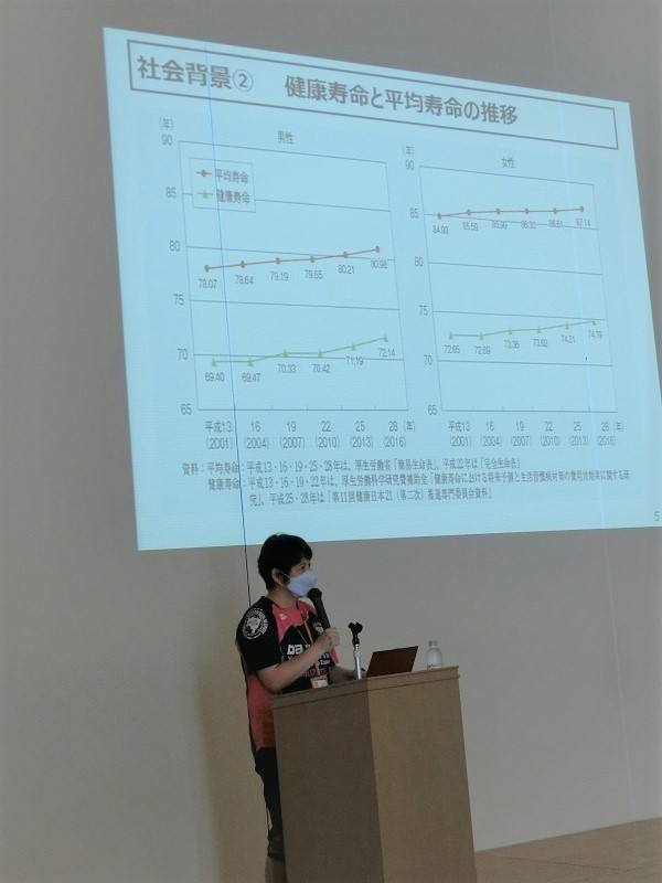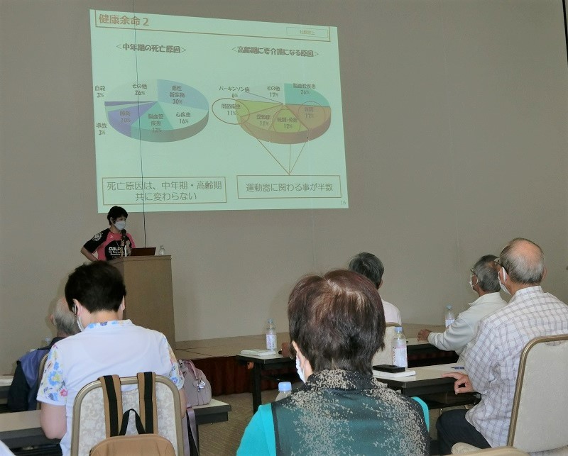 本年度の「健康学ぼう会」は、健康に関しての「元気100年計画」、即ち「人生100年時代」健康寿命を延ばす取り組みとして、株式会社ティップネス スクール企画部 福井仁美先生を講師として、「健康脳トレ体操と健康講話」を開催しました。