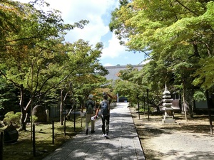 光明寺は平家物語で有名な熊谷次郎直実が、殺生に世のむなしさを感じ、法然上人の弟子となって、念仏三昧のために草庵を結んだことに始まります。又この地は法然上人が自ら悟りを開いた念仏の第一声を庄屋の高橋茂右衛門に授けた「浄土門根元地」でもあります。御影堂の裏には法然上人が眠る御本廟もあって、西山浄土宗総本山としての威容を誇っています。秋には参道が紅葉で美しく彩られます。