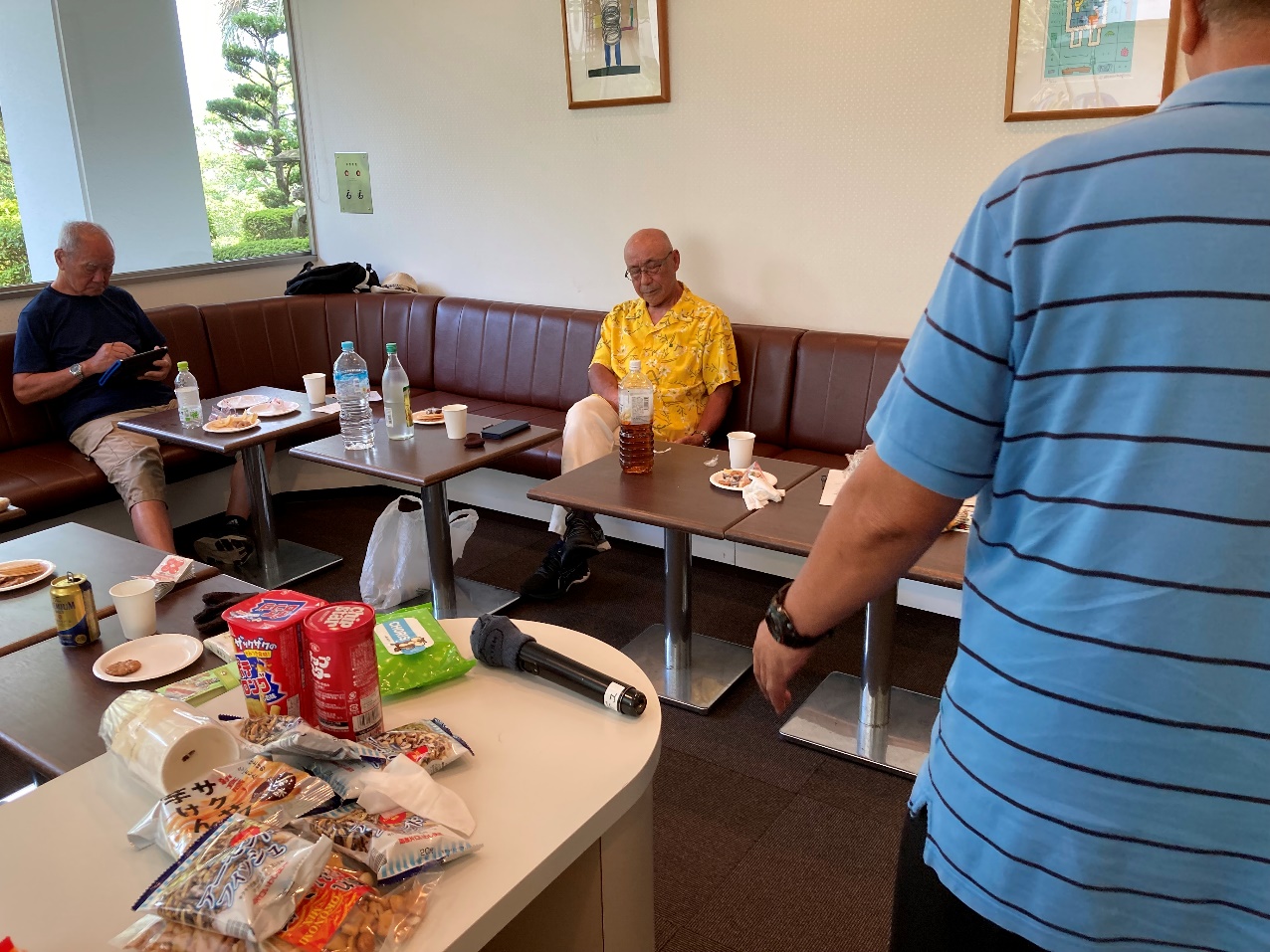 梅雨明けを思わせる晴天が続き気温も猛暑、コロナも増加し心配もありましたが、それでもカラオケ大好きメンバー定刻に集まり好きな曲を唄い楽しみました。