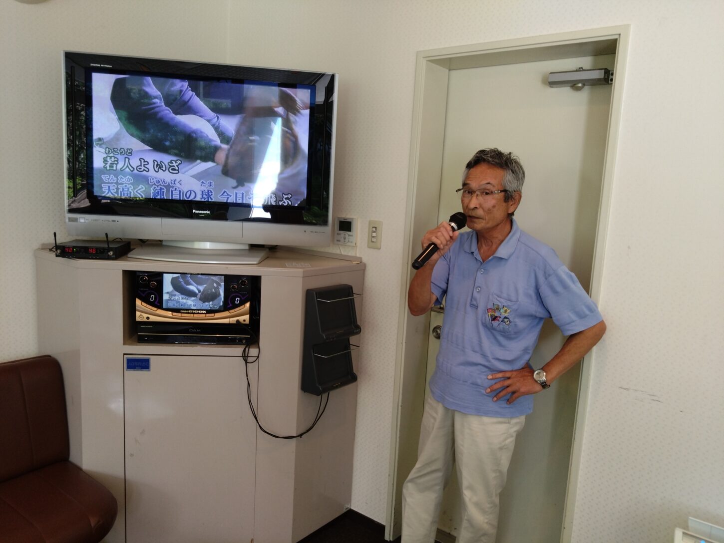 例年にない猛暑の続く夏でしたが、季節どうりの過ごしやすい気候になって来ました。中庭ではツクツクボウシが嬉しそうに鳴いています。リゾート内レストランさくらより調達日ごろ飲めない高級プレミアムビールを飲みながら、皆さん楽しいカラオケのひと時を過ごしました。