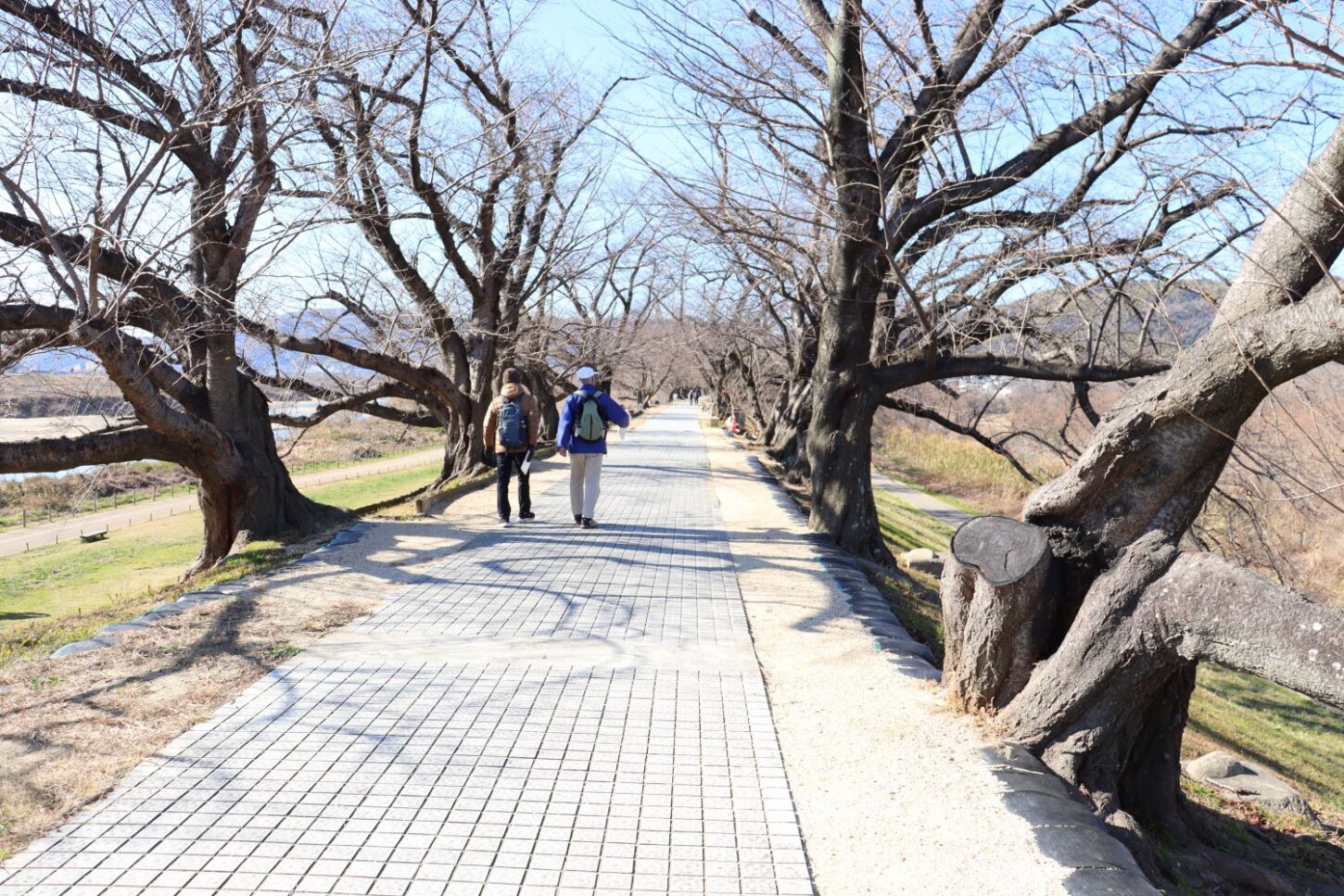 ◇コース 京阪石清水八幡駅10:10→八幡宮入り口(コース説明・ストレッチ体操)10:15→表参道→本殿10:30→エジソン記念碑広場10:50→展望台・集合写(眺望)11:20→裏参道→背割提(昼食12:00)→12:40(出発)→背割提先端13:10(先端往復2.4km)→さくらであい館(トイレ・休憩・展望タワー)14:00 解散