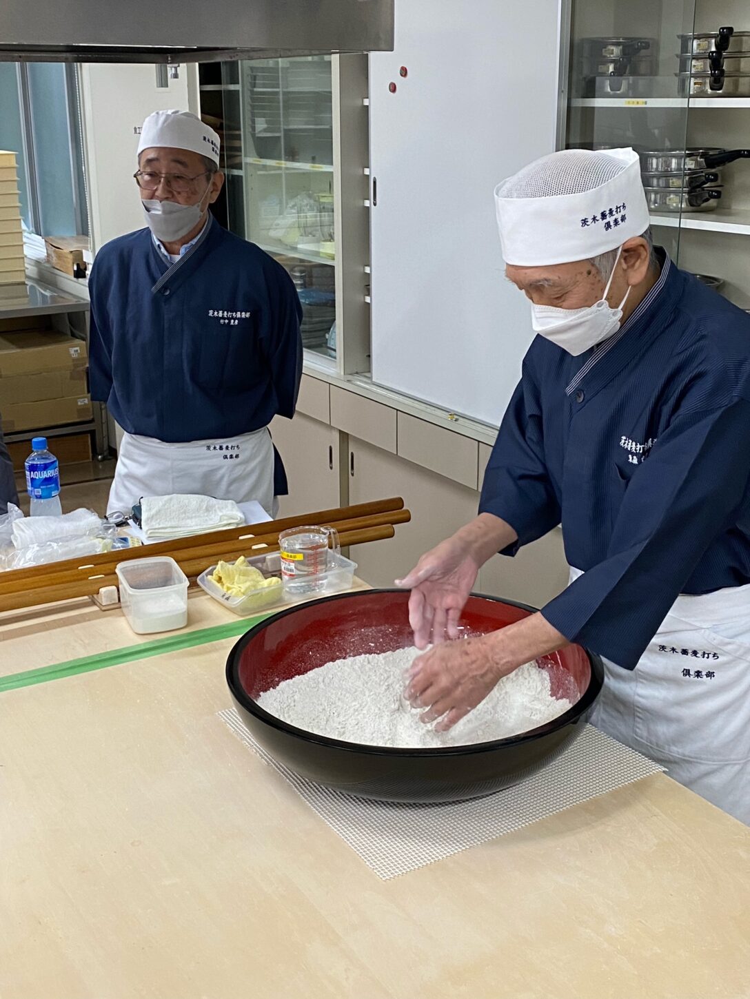 指導は以前「頑張る会員」にて紹介された東森さんが所属されている茨木蕎麦打ち倶楽部の12名で行っていただきました。