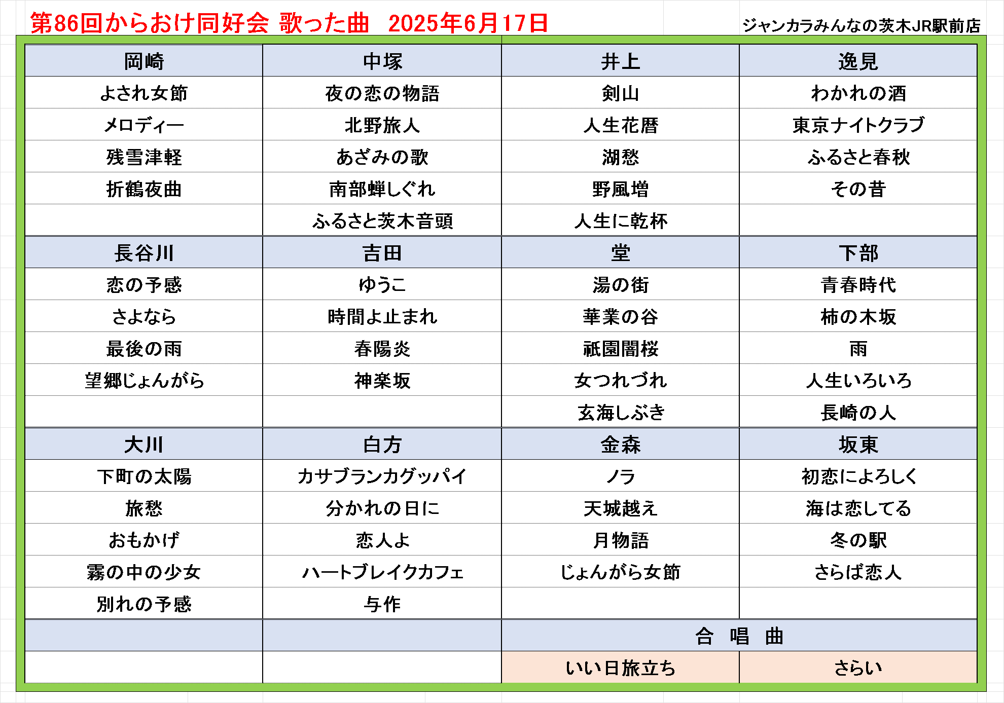 ※7月の会場変更してます。パナソニックリゾートからジャンカラみんなのJR茨木駅前店。