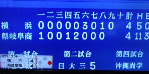 - 此のままさよならか。タイブレーク10回横浜3点、県岐商3点11回さよならゲームセット。