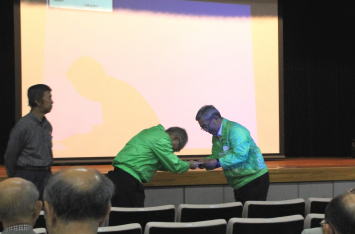 ![]() 災害救助支援セミナーでお話いただいた、交野消防署:山添消防長 |