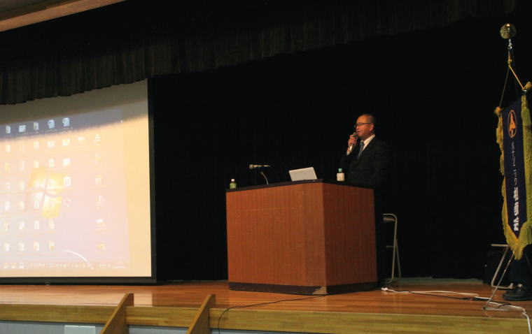 第二部 記念講演会は交野市消防本部の山添消防長を講師にお招きし、交野市消防本部の活動内容を中心に防火・防災についてお話しいただきました。