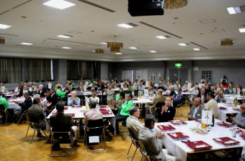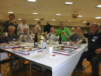 第三部 会食懇親会では、令和記念鏡開きに続き乾杯と御来賓の皆様より挨拶をいただき、会食懇談がスタートしました。 出席者の皆さん、楽しそうにお酒やお弁当を召し上がりながら日ごろ疎遠の方々との情報交換や世間話に花を咲かせておられました。 最後に恒例のビンゴ大抽選会で大いに盛り上がり、あっと言う間にお開きの時間となり、中締めは 白岩陽太郎様(2班)の一本締めでめでたくお開きとなりました。