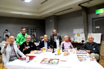 第三部 会食懇親会では、令和記念鏡開きに続き乾杯と御来賓の皆様より挨拶をいただき、会食懇談がスタートしました。 出席者の皆さん、楽しそうにお酒やお弁当を召し上がりながら日ごろ疎遠の方々との情報交換や世間話に花を咲かせておられました。 最後に恒例のビンゴ大抽選会で大いに盛り上がり、あっと言う間にお開きの時間となり、中締めは 白岩陽太郎様(2班)の一本締めでめでたくお開きとなりました。