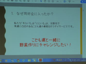 | 体験報告発表会(柳原さんは機器の動作異常で、次回に変更) | |||