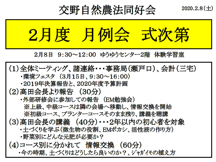 - 交野自然農法同好会 2月度 活動報告(2月8日)