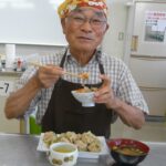 ・炊き込みご飯は3釜で炊くので、準備は3班に分かれて行 あないました。お酒の投入量を多くしたと言う釜のご飯が一 あ番美味しいという評価に。ただし、どの釜も「おこげ」が あ付いておいしく炊き上がりました。 ![]() ・皮なしシュウマイは、形よく丸めるのに苦労しましたが、 あ片栗粉を追加することで マアマアきれいに。蒸し上がる あと結構いい色味を出しました。