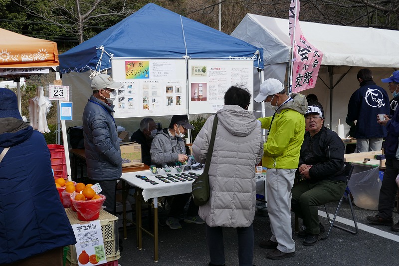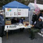 - 松愛会「竹炭づくりボランティア」のブースと会員の皆さん