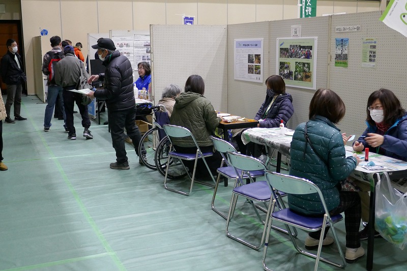 育館や屋外にブースを設けて、それぞれ施行を凝らして日頃の活動の成果を展示され、来場者への説明やアピ