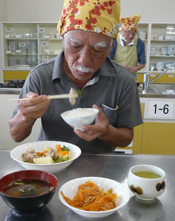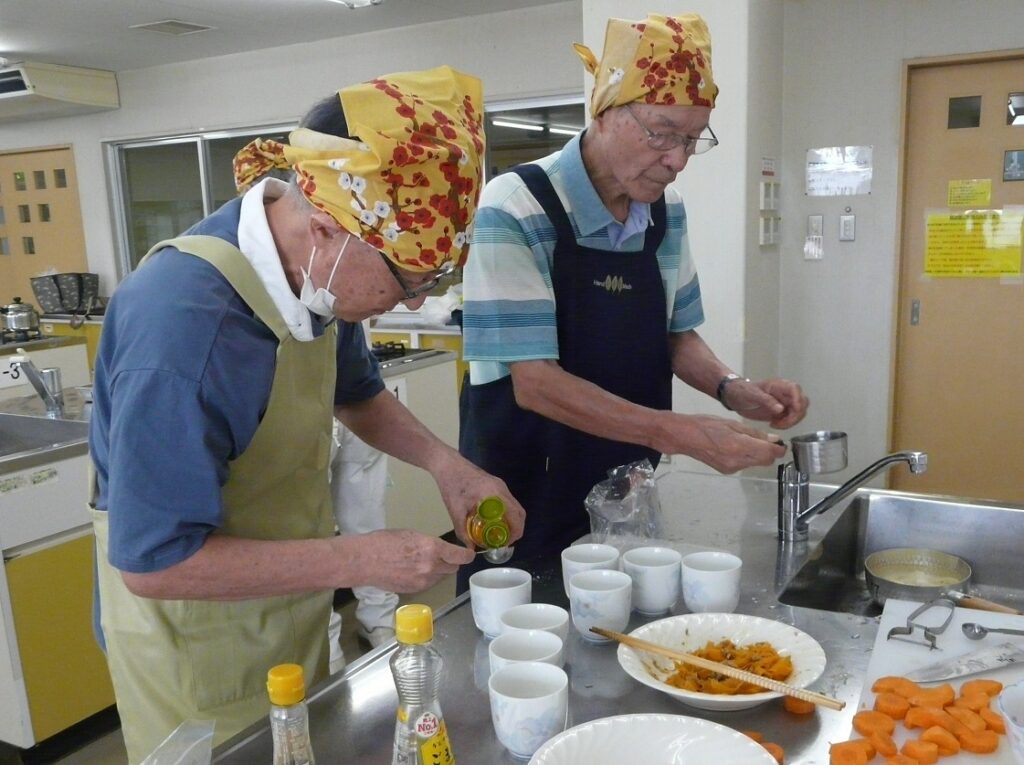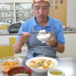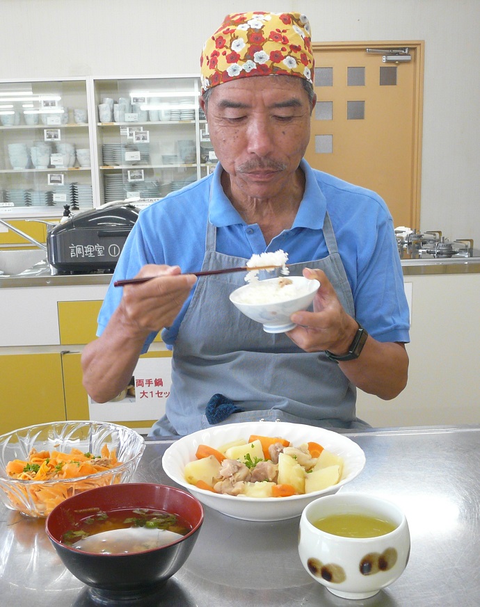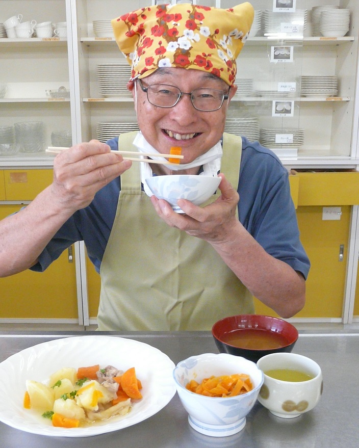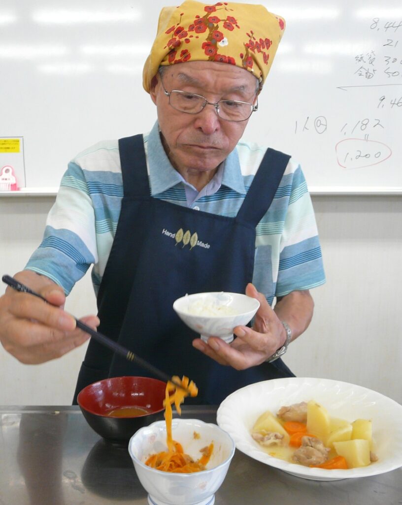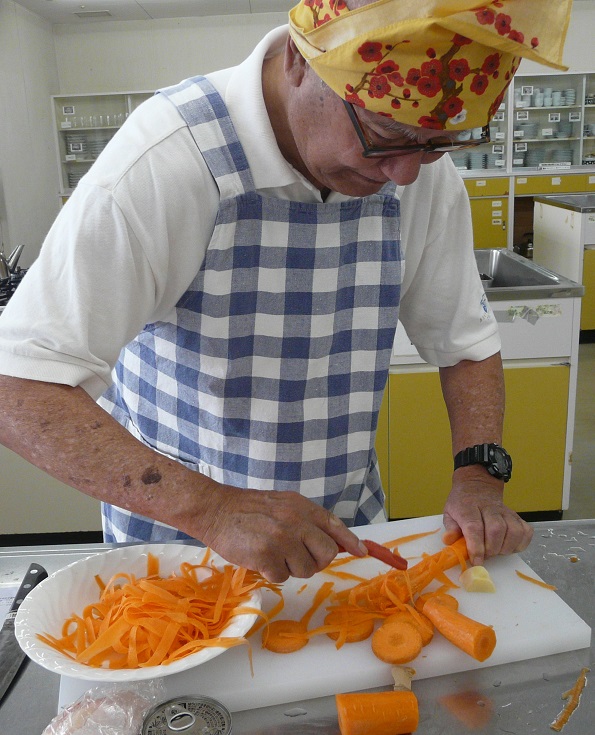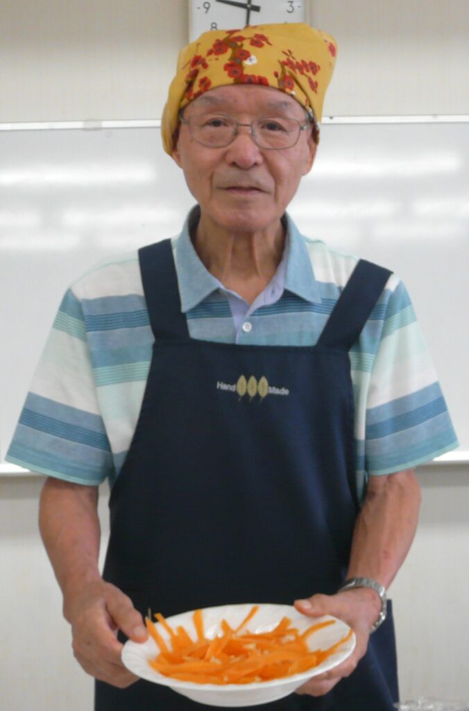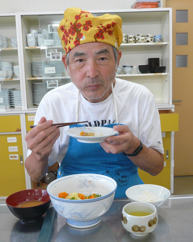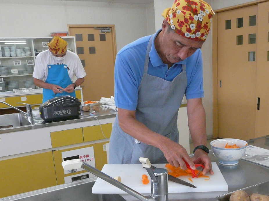 2024.09.27 同好会, 同好会1, 新着情報, 男の料理同好会 男の料理同好会9月度活動報告 男の料理同好会9月度活動報告を更新しました ああああああああ 行事名 男の料理同好会 実施日 2024年9月10日 場 所 ゆうゆうセンター3階 調理実験室 1 参加者 安孫子進吉、上田 真二郎、小森 泰弘、佐藤 義也、竹嶋 定、橋本 茂 あ松鵜 修作、 山田 謙一 (8名) 内 容 献立 人参とツナの生姜炒め 鶏肉とじゃがいもの塩煮 教 材:クックパッドのレシピより 講 師:安孫子 進吉 食材購入担当:安孫子 進吉(一部 竹嶋定) 料理の完成品 あああああああああああ⇒ 料理作りの模様 料理教室スタート 人参をピーラーで削って あ 人参の具材(リボン)の出来上がり 塩煮用の調味料合わせ 鶏肉は一口大に切って じゃが芋は8等分に人参は半月切り 感想など (講師談) ・久し振りの講師担当で家で実習したが、大ぶん戸惑いがありました。何とか あ皆さんのご協力により無事終了しました。 ・今回は、生憎とコメ不足のタイミングと重なり、購入に手間取りました。近 あ隣のスーパー4店及び北河内農協でも在庫がなく、最後に枚方の業務スーパ あーでタイミングよく新米入荷直後で5kgの手当てが出来ほっとしました。 ・調理の方では、煮物のじゃが芋と人参が少し固くレンジの時間が足りないよ あうでした。 反省しています。 ・次回のときは早い目の準備と確認が必要と思いました。 あああああああああああああああああああああああ・本日の講師⇒ 今後の予定 ・10月 8日(火) ・11月12日(火) 参加者の皆さん あああああああああ ああいただきまーす。 ああああ・人参をピーラーでリボンのように薄く長く削るのが中々難しかった。 ああああ・苦心した甲斐があって人参の生姜炒め、美味しく戴いた。 ああああ・塩煮も電子レンジでカンタン調理が出来た。塩味も結構いいものだ。ああああ ❏全員集合! 今日も時短で美味しい料理が出来ました。 ハイ、皆んなでオッケー! 交野支部TOPページへ 男の料理TOPへ 活動報告 同好会, 同好会1, 新着情報, 男の料理同好会 コメント: 0 交野自然農法同好会9月度活動報告前の記事 麻雀同好会9月度活動報告次の記事