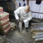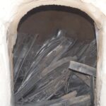 ああああ・絵付けに使える竹炭の歩留まりを上げるため、竹束横置き(捻れ防止)、火力控目(ひび割れ防止)、