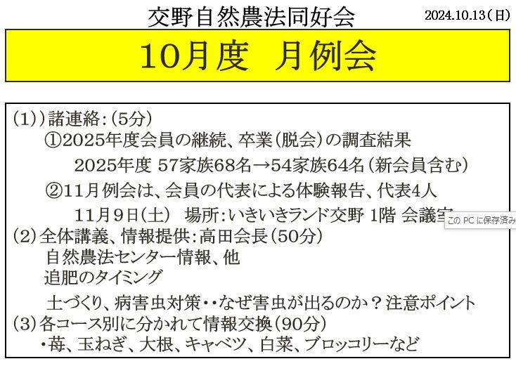 交野自然農法同好会2024年10月度活動報告を更新しました