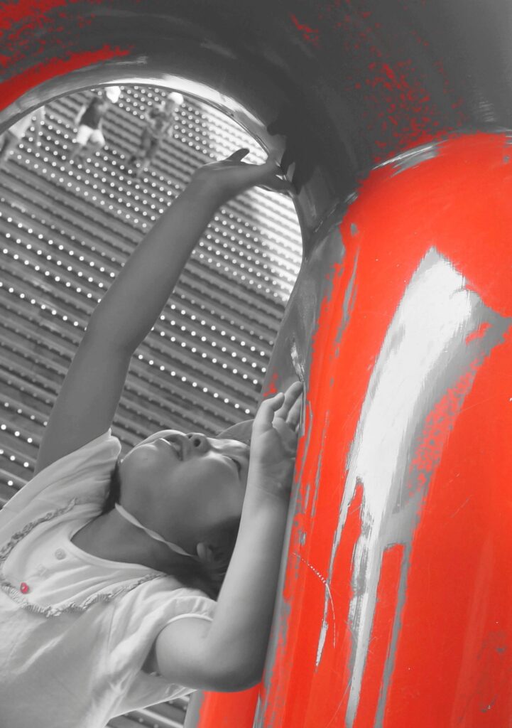 ああああああ4票 勝野 秀俊 校外学習、駅構内の赤いオブジェに魅かれて撮りました。