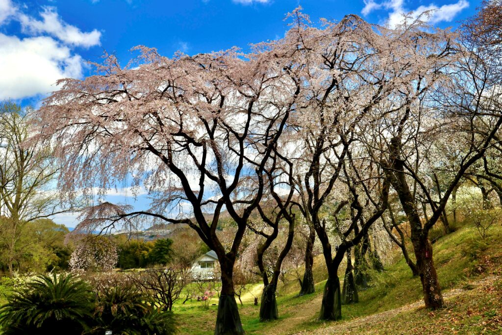 ああああ1席4票 菅野 隆文 私市植物園の名物枝垂れ桜を、第2京阪を背景に撮影。
