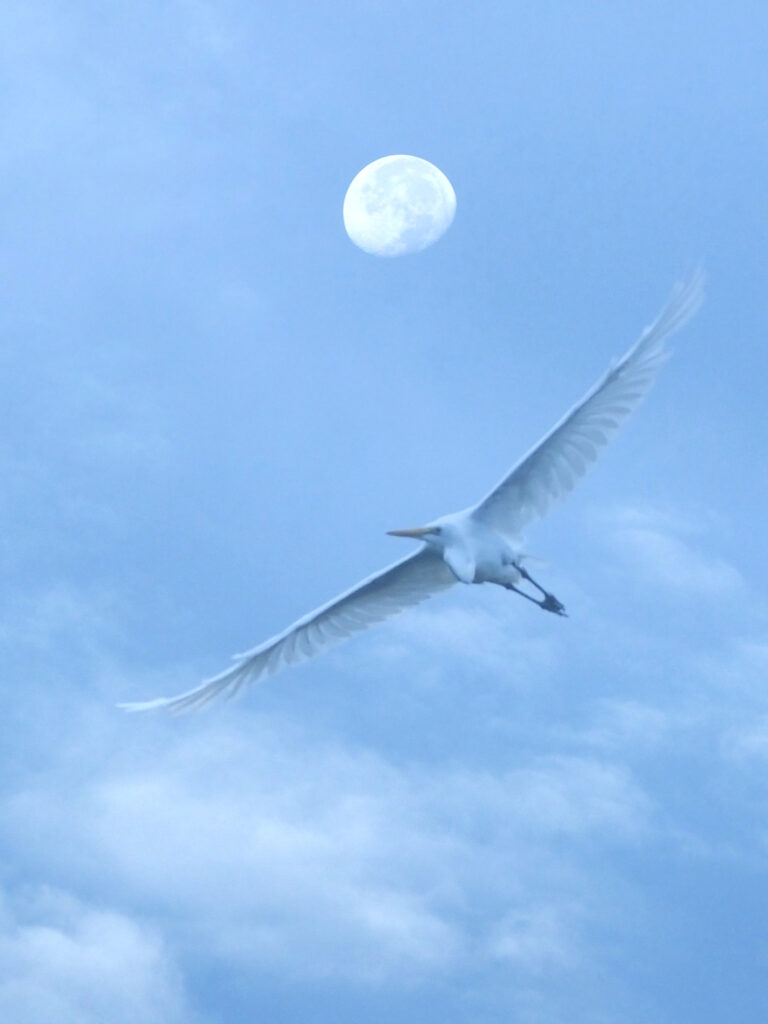 ああああああ4票 杉山 豊 月とサギを別々に撮影し、PCで合成しました。