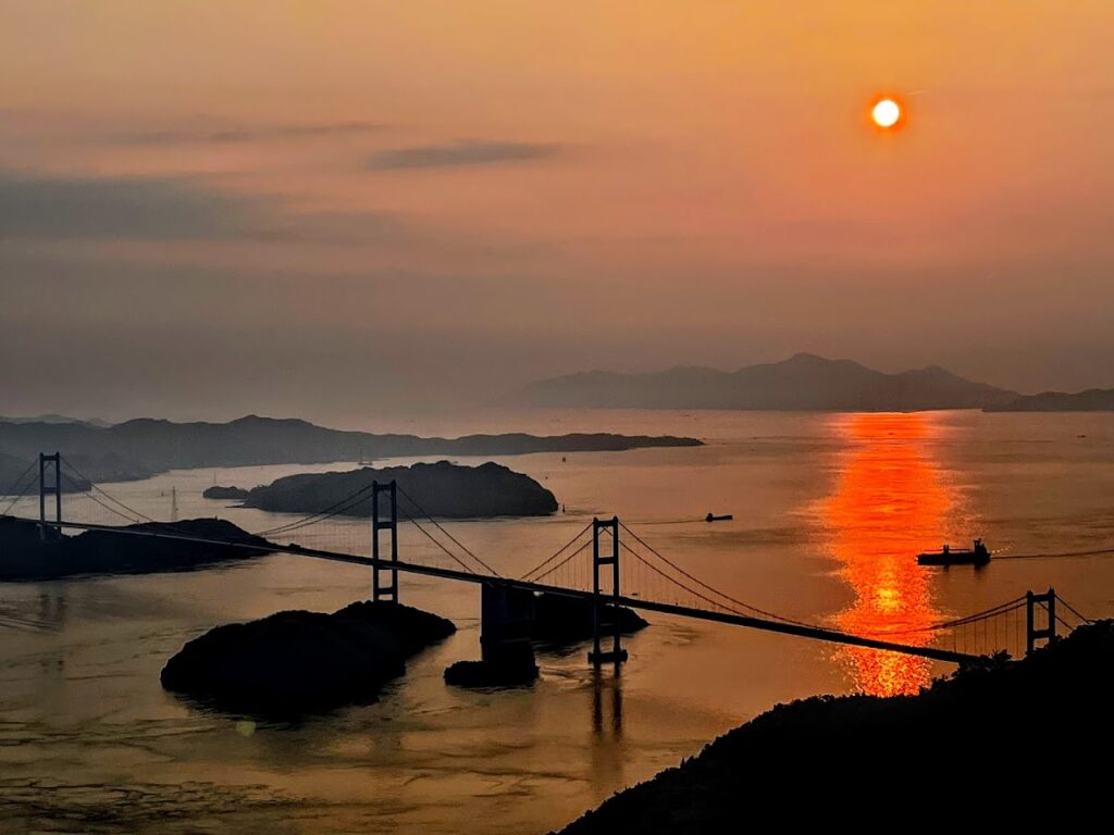 ああああ1席10票 横山 隆 しまなみ海道の亀老山展望公園より瀬戸内に沈む夕日を撮影、春霞でクリア