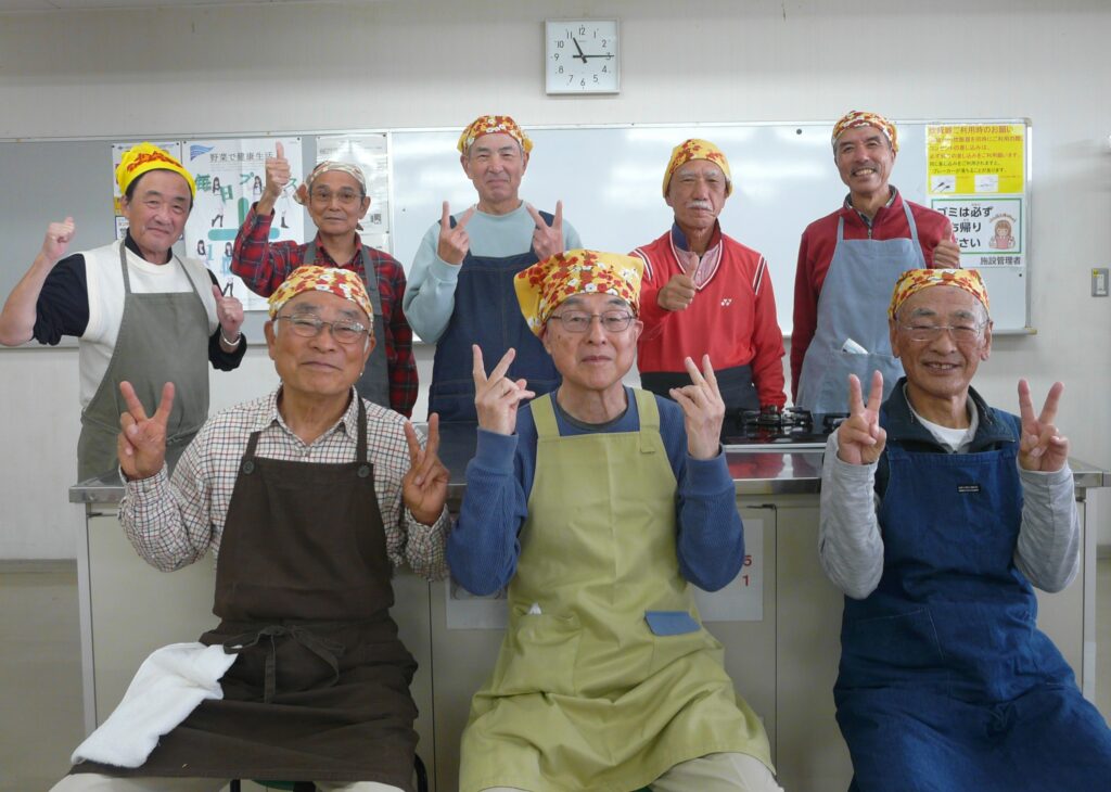 ああああ今日も楽しく賑やかな料理教室でした。みんなでグー、チョキ、ピース !