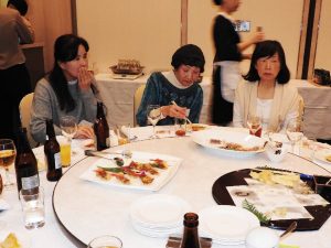 2)班毎の賑やかな歓談や、旧友との久しぶりの語らいなど、会場のあちこちで歓談の輪が見られました。