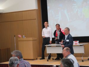 5.浅井支部長より今年で退任される、米谷副支部長、西岡地区委員に記念品を贈呈し、退任挨拶を頂いた。