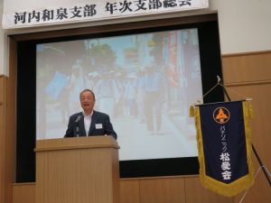 議長より「上田パナソニック松愛会会長」と「津賀パナソニック㈱社長」のメッセージを代読披露した後議事に入った。