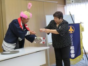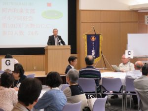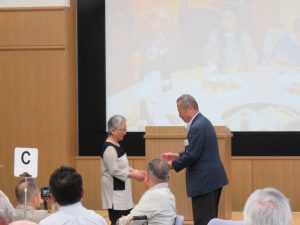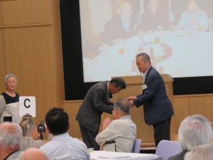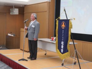 5.浅井支部長より今年で退任される、米谷副支部長、西岡地区委員に記念品を贈呈し、退任挨拶を頂いた。