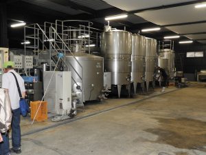 (4)続いてワイナリーへ移動。河内ワインでは基本的に現地で収穫されたブドウしか使わないので、今は収穫前で工場は稼働していなかった。