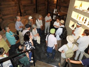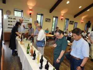 - 生産ワインのサンプル前で説明を聞く皆さん