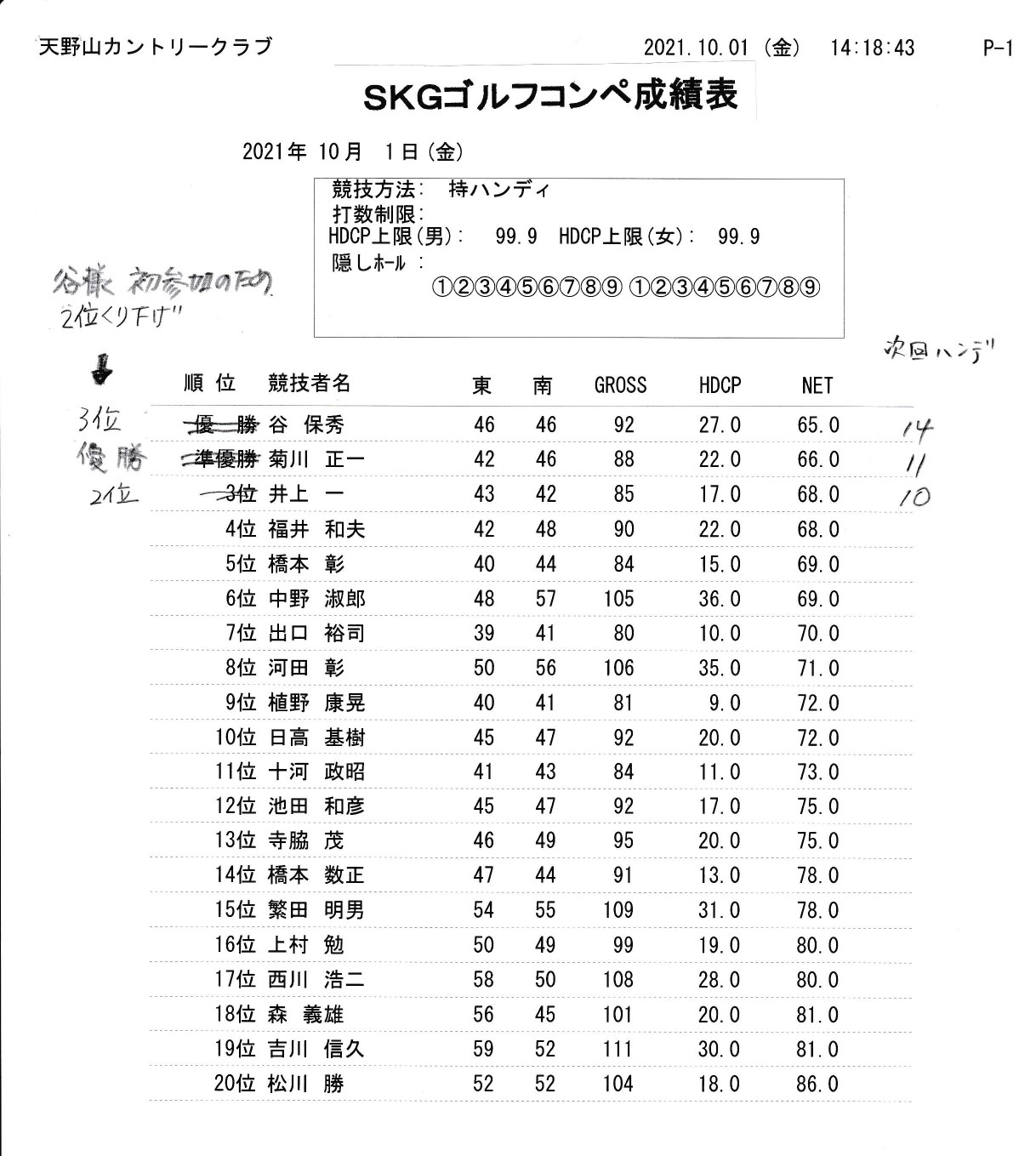 | 今回の入賞者 優 勝 菊川正一会員 10班 準優勝 井上 一会員 2班 第3位 谷 保秀会員 7班 *訂正しました(2位3位入替) スコア表 |