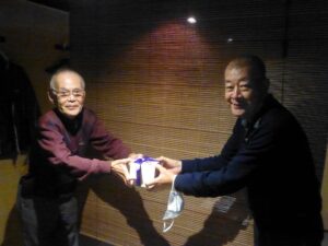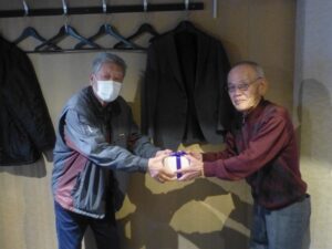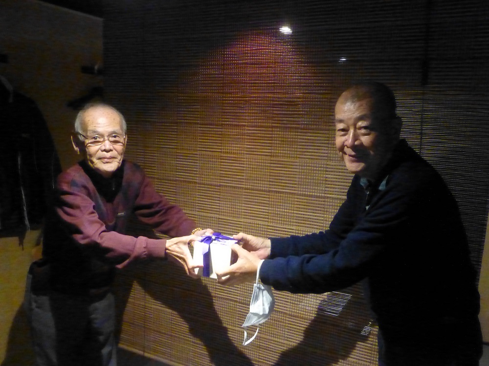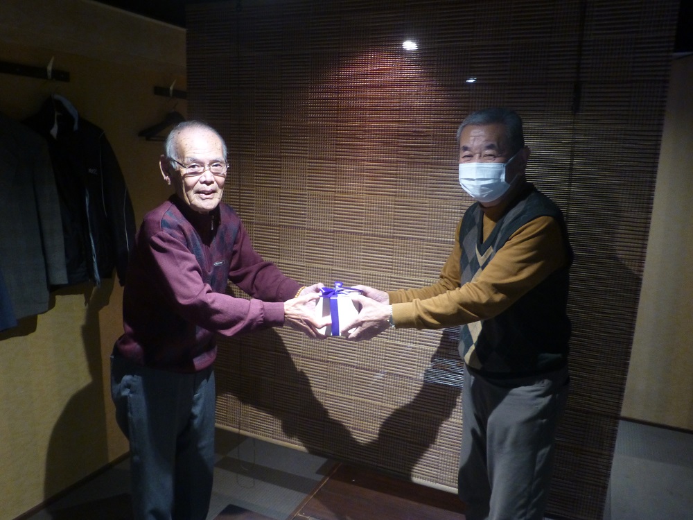 ◆最初に今年、喜寿を迎えられた3名の方々に記念品とお祝金をお渡しした。