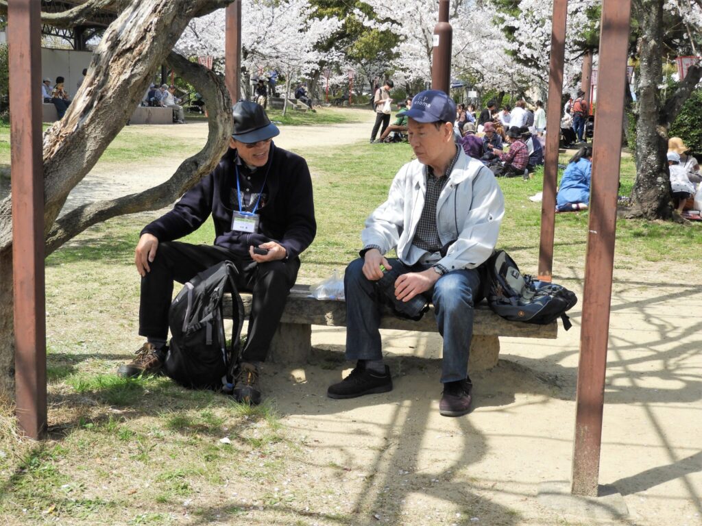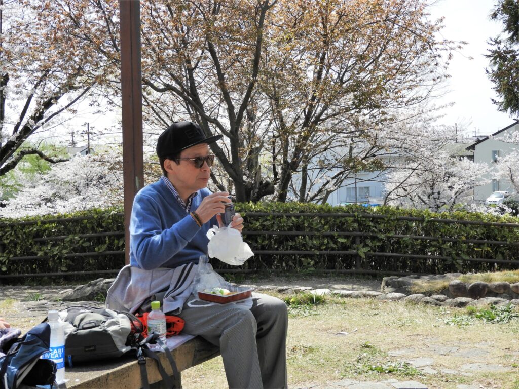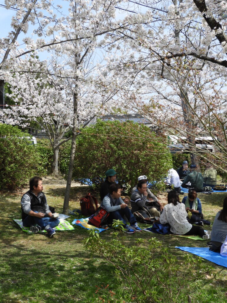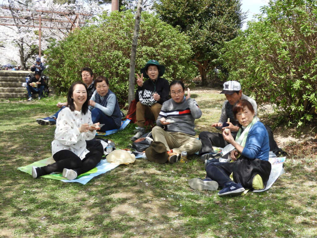 ・タイミング良く桜の花が満開。 各々、桜の花の下で昼食を食べてすっかりお花見気分に。