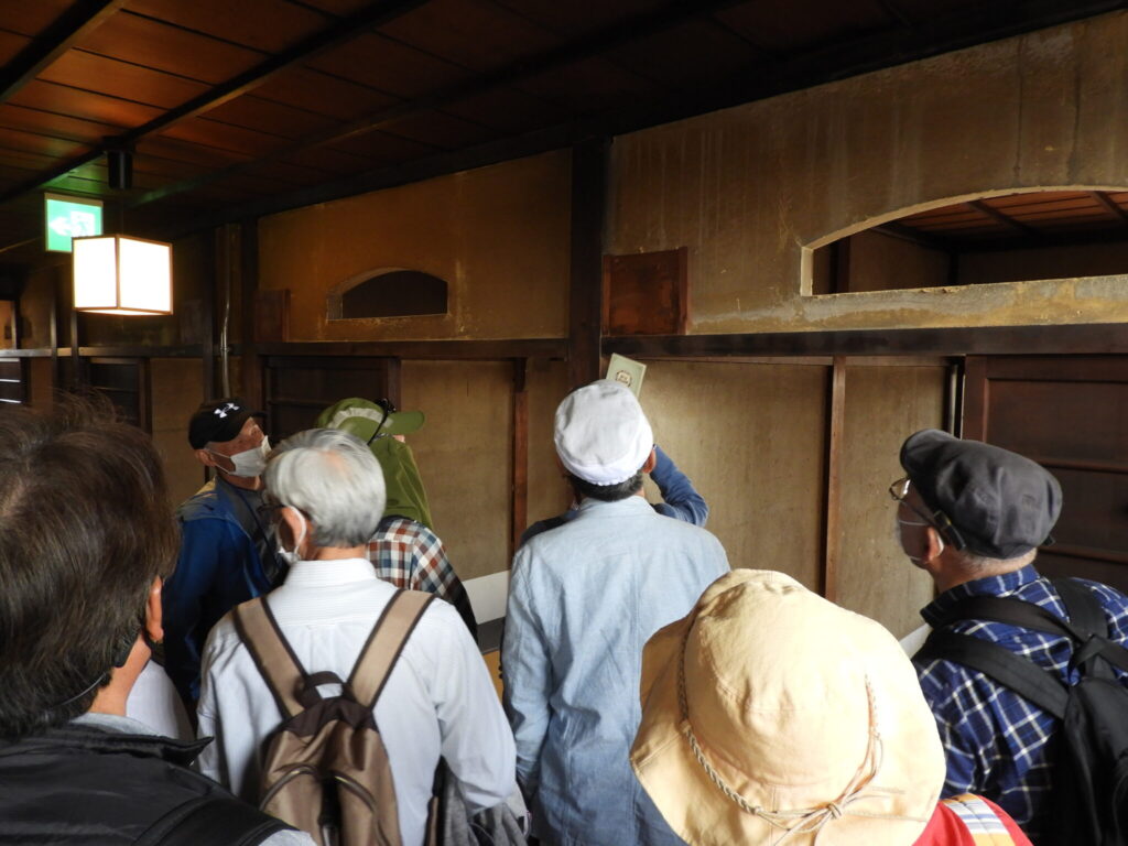 ⑥コースの最後は、大正時代に当時では珍しい木造の三階建てで造られた元遊廓の「町家物語館」を見学しました。