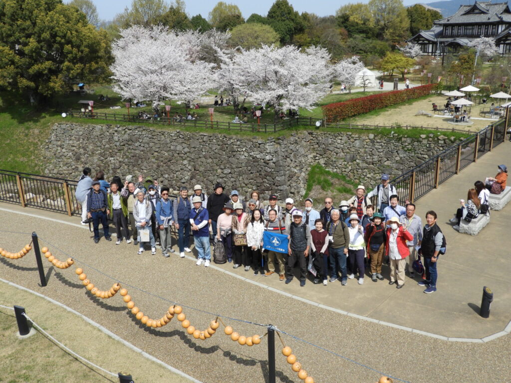 ・昼食後は気温が少し暑いぐらいの陽気になっていましたが、郡山城跡の城内へ入り桜満開の景観を楽しみながら、記念写真も1枚パチリと撮りました。