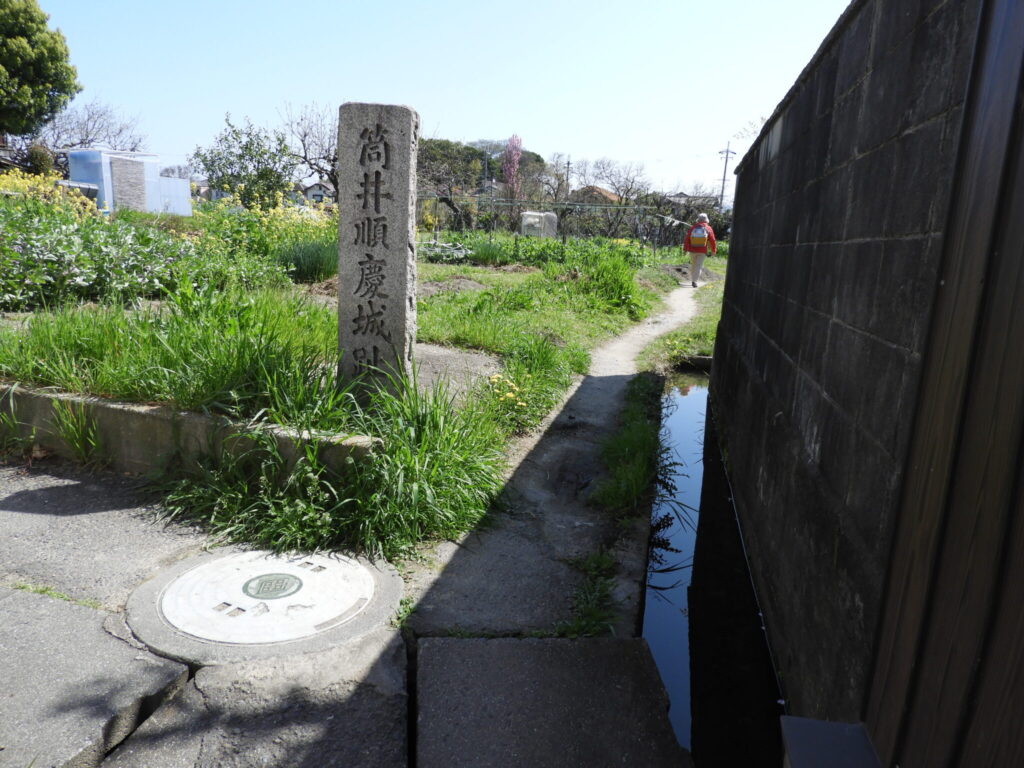 ・「栄華盛衰、つわものどもが夢の跡」 今は畑の中に小さな筒井城址の石碑が立ってるだけでの場となっていました。