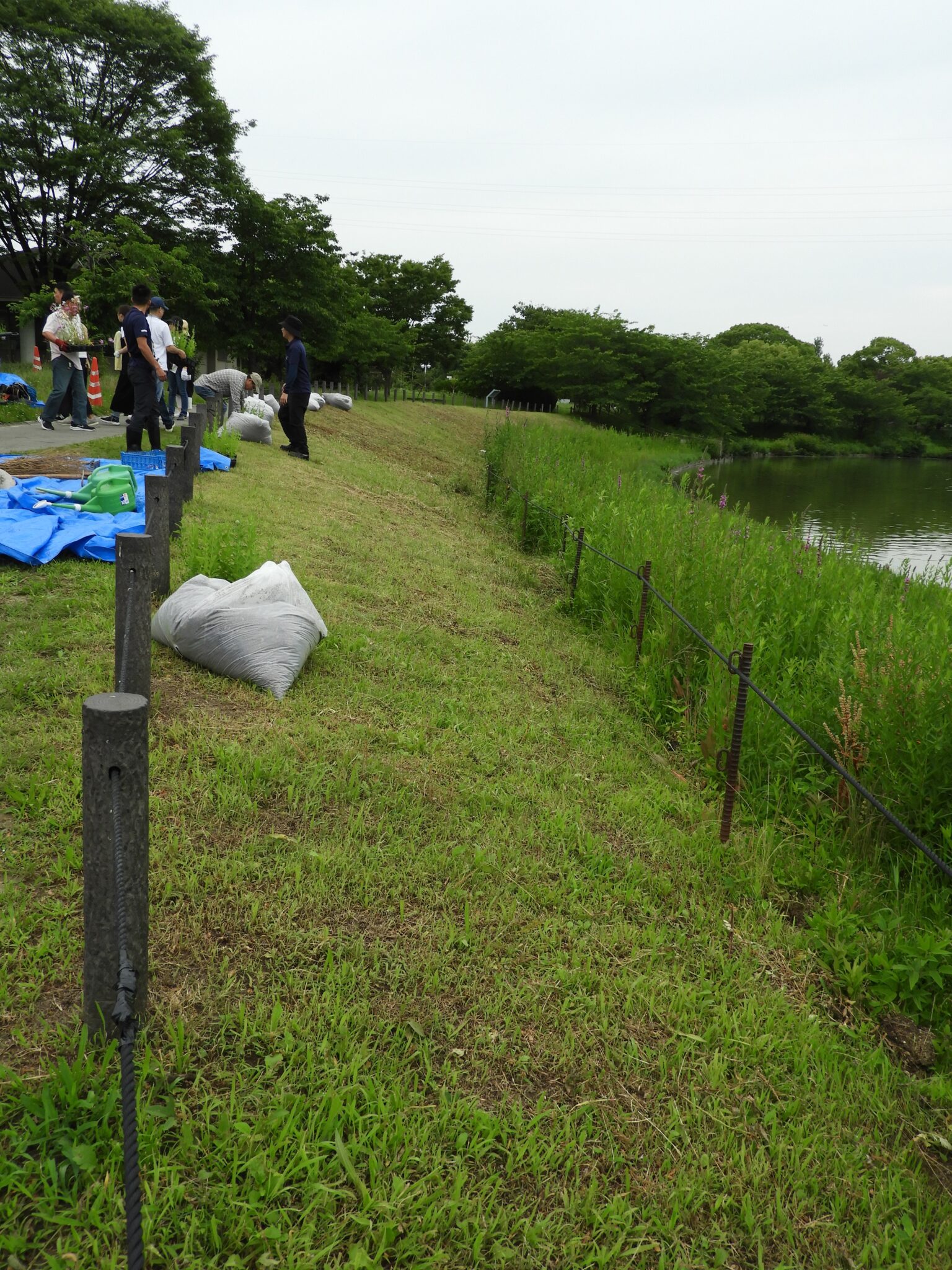 今回は花の苗(ききょう・なでしこなど)を大池の土手約50mに定植。慣れないスコップ穴掘り作業や土づくりに”いい汗”を流す!順調に作業は進み、12時前にトラブルなく作業終了。約1か月後に満開の花が来園者を楽しませてくれるでしょう!