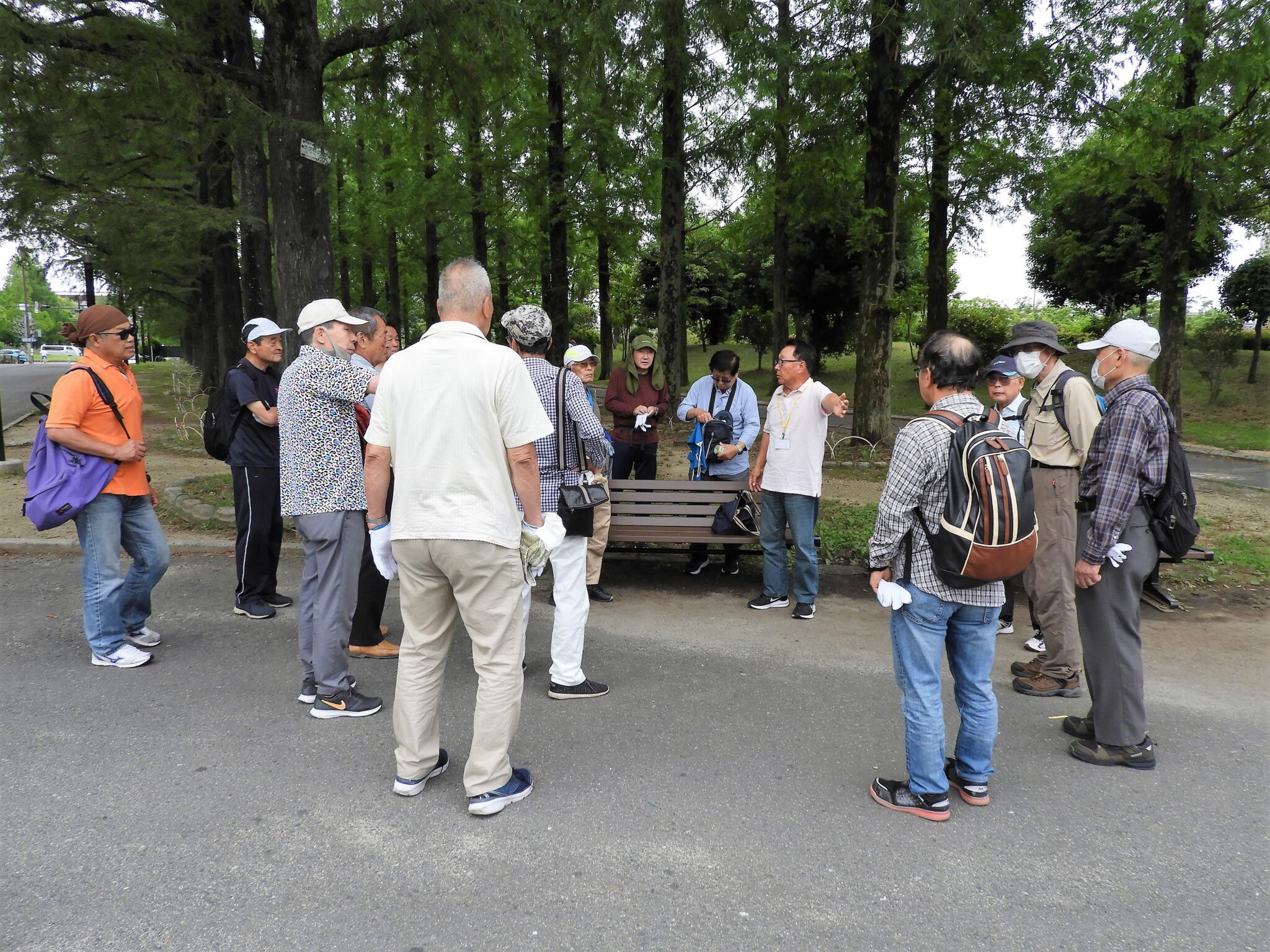 - 今年はすでに入梅しており、天候の心配はあったが蒸し暑いながら梅雨の谷間に恵まれ午前中いっぱいで作業を完了した。昨年(13名)に比べ18名の参加者!三洋OB(洋友会)・大学ゼミやファミリー参加で総勢凡50名のにぎやかなイベントで和気藹々、みなさん楽しんでおられた。