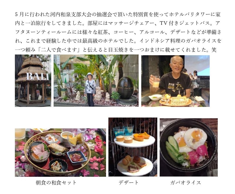 2024.07.19 松愛河内和泉らいん, 活動・情報 Line 投稿 バリタワー 5月の支部大会で 特別賞(会場ホテル一泊宿泊券)の神谷さんからの投稿です 投稿者: tokawa 松愛河内和泉らいん, 活動・情報 コメント: 0 支部HP委員会 24年7月前の記事 Line 投稿 初夏の風景 難波八坂神社次の記事